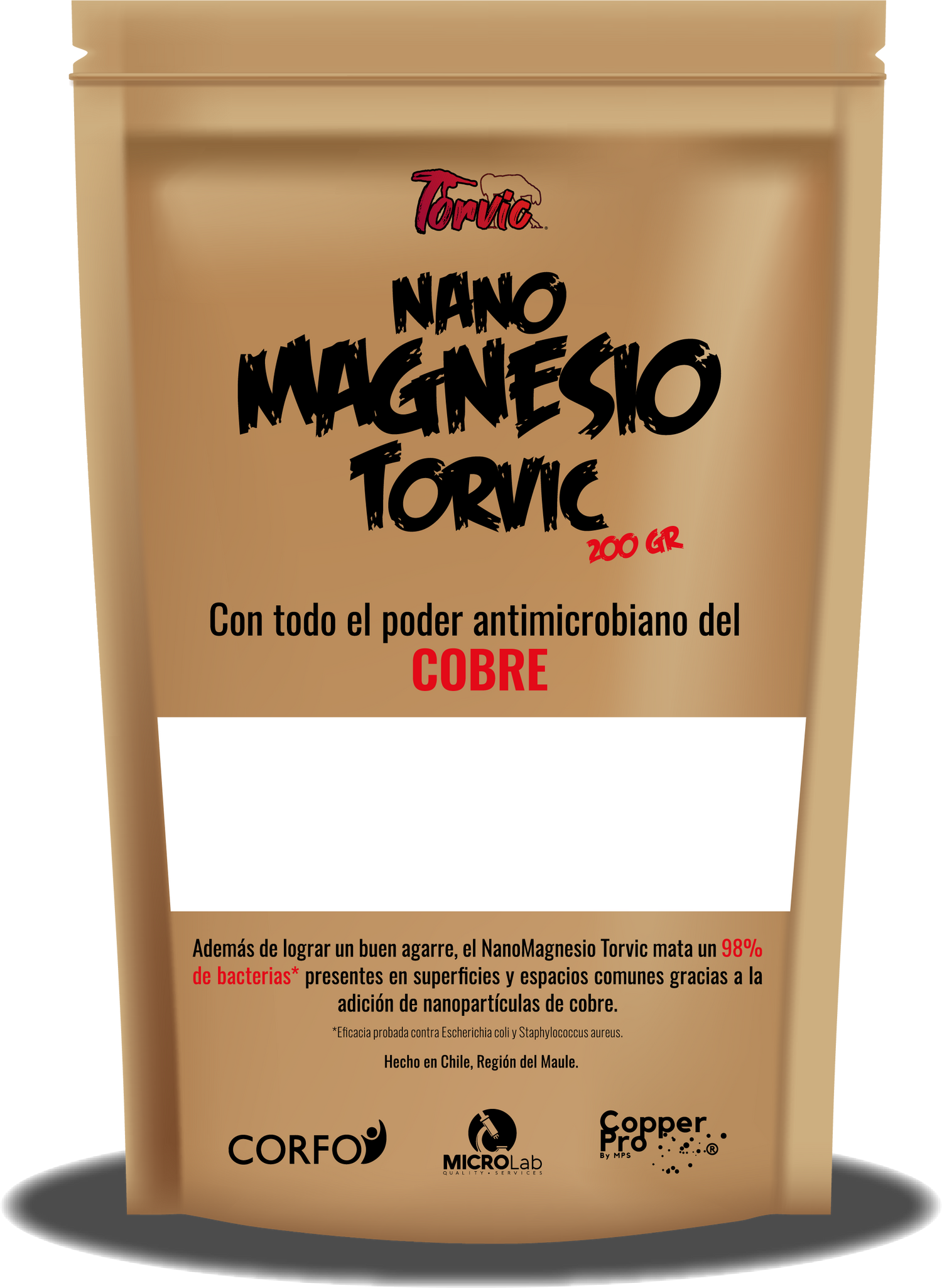 NanoMagnesio Torvic® es un producto que incorpora nanopartículas de cobre al carbonato de magnesio convencional, el cual cumple la función de brindar adherencia a supeficies e implementos a la hora de entrenar y además brinda seguridad e higiene a deportistas urbanos y olímpicos frente al bacterias y posibles virus.